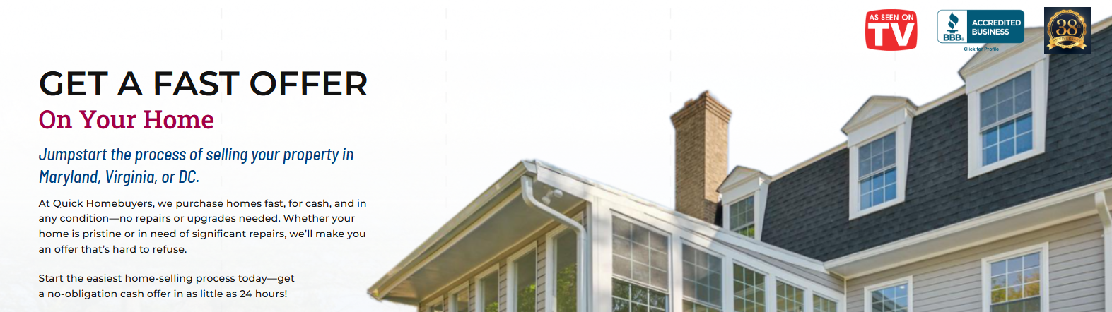 Sell your house fast with Quick Homebuyers. We buy houses in any condition across Maryland, Virginia, and Washington DC, ...